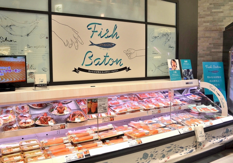 イオンの総合スーパー事業を担うイオンリテールは、11月21日に開店した都内の新店舗に、認証魚のみを陳列する常設コーナーを初めて設置した。コーナー名は、「FishBaton(フィッシュバトン)」。親の手と子の手の間に魚を描いたロゴマークで、「豊かな水産物を次の世代につなげよう」と消費者に呼び掛けていく。(オルタナ編集委員=瀬戸内千代)