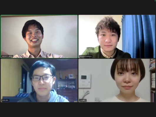 どんな困難にも負けずに努力する祖父のDNAを受け継いでいきたいと思い、活動に取り組みます。今は、同じ大学の友人や後輩など合わせて4人の仲間たちで日夜オンライン会議の日々を送ります。