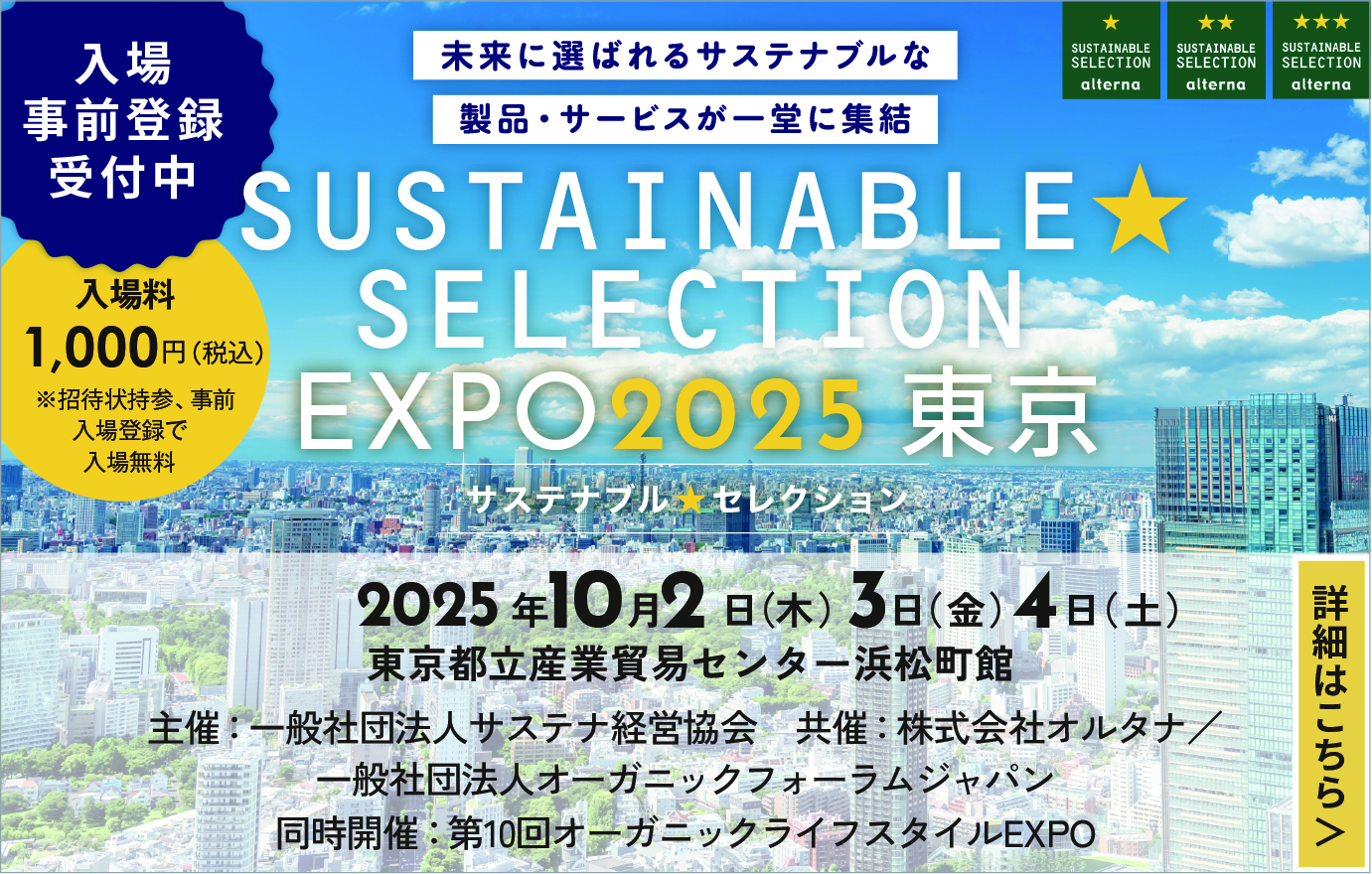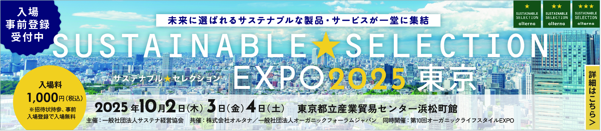 「サステナブル★セレクション」とは、サステナブル(持続可能)な理念と手法で開発された製品・サービスを選定し推奨する仕組みです。