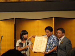 河村たかし名古屋市長は、フェアトレードの理念を支持し、「日本一の貿易港である名古屋は、フェアトレードをやるのに最もふさわしい所だで!やろみゃ!」と名古屋がフェアトレードタウンになることを応援していくと宣言した。大村秀章愛知県知事も名古屋市のフェアトレードタウンを応援。「みんなでやろみゃあ!フェアトレード!」を合言葉に会場に集まった人々が声を合わせ心をつなぎ、大きな一歩を踏み出したのだ。