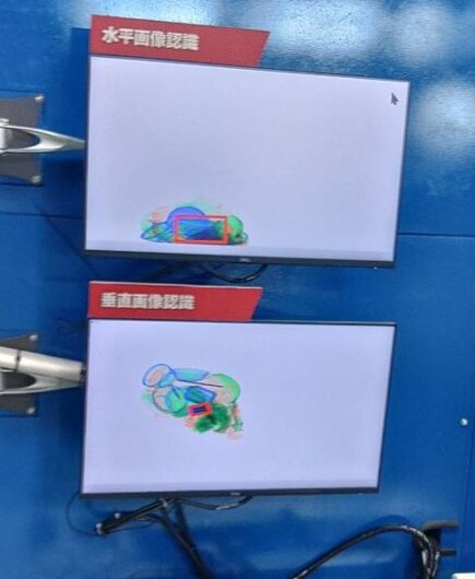 リチウムイオン電池を検知すると赤で囲み、ゴミ袋のどこにあるかを作業者に知らせる