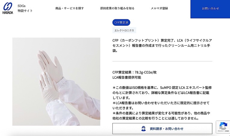 先ほど紹介したLCAエキスパートを中心に、原材料調達から製造・輸送・使用・廃棄に至るライフサイクル全体のGHG排出量(CFP)を算定しています。それをサイト上で公開することで、取引先がサステナブルな製品を選ぶ際の参考にしていただきたいと考えました。