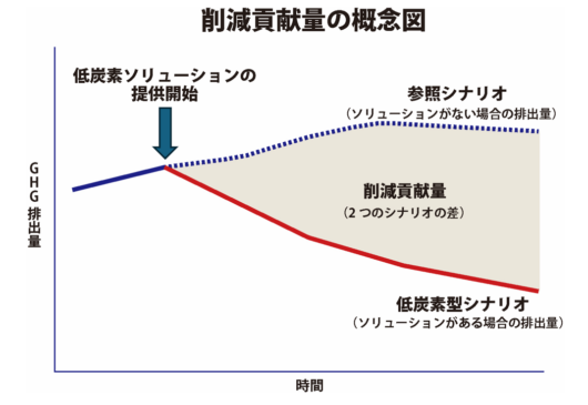 企業は、炭素効率の良い自社の製品・サービスなどを提供することにより、社会全体の排出削減に貢献することが可能である。削減される温室効果ガスの排出量を定量化したものが「削減貢献量」であり、一定の想定や仮定を置いた上で算定される。