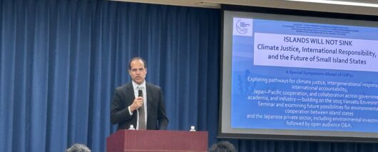 上智大学アイランド・サステナビリティ研究所は3月13日、バヌアツ共和国のラルフ・レゲンヴァヌ気候変動適応・気象・地象災害・エネルギー・環境・国家災害管理大臣を招き、「島々は沈まない」と題する講演会を開いた。