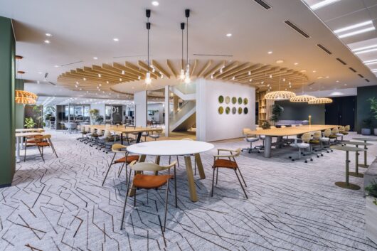 例えば同社が手掛けた三菱総研DCS(東京・港)の新本社オフィスでは3フロアをつなぐ内階段は移動手段だけでなく、偶発的な会話などを生み出す場として設計。階段周辺には気軽に立ち寄れるスペースを設けている。