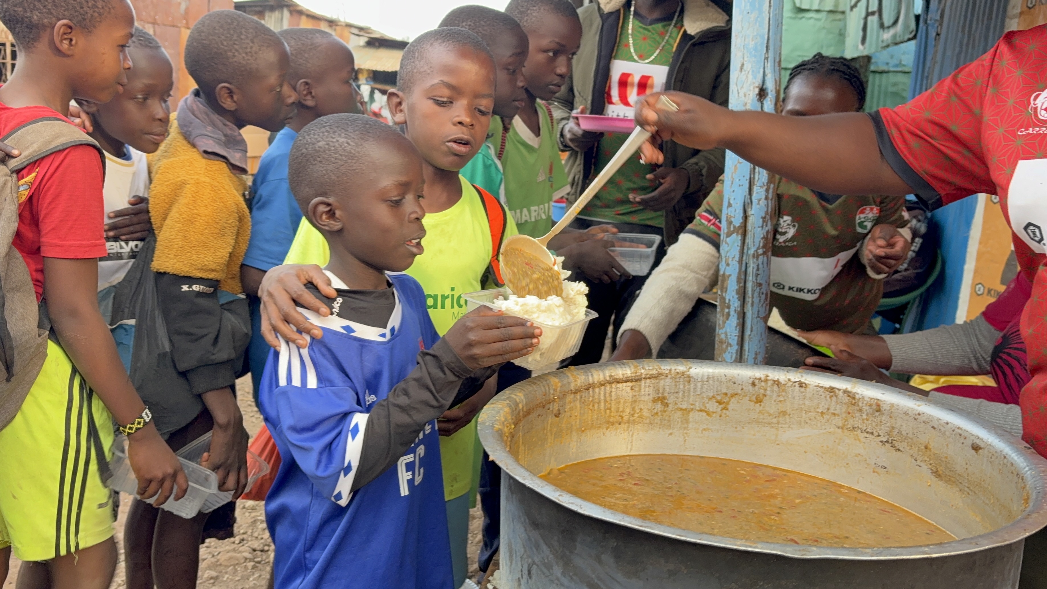キベラキベラA-GOALリーグの特徴は、食事の提供も行っている点だ。試合日には、子どもたちに栄養のある食事を提供している。