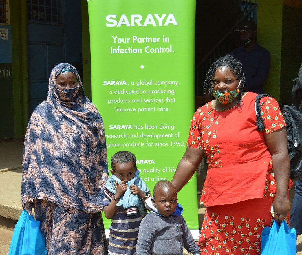ケニアに現地法人を持つサラヤも、この取り組みに共感し、寄付に加え、消毒剤や石けんなど衛生関連用品の提供を行った。