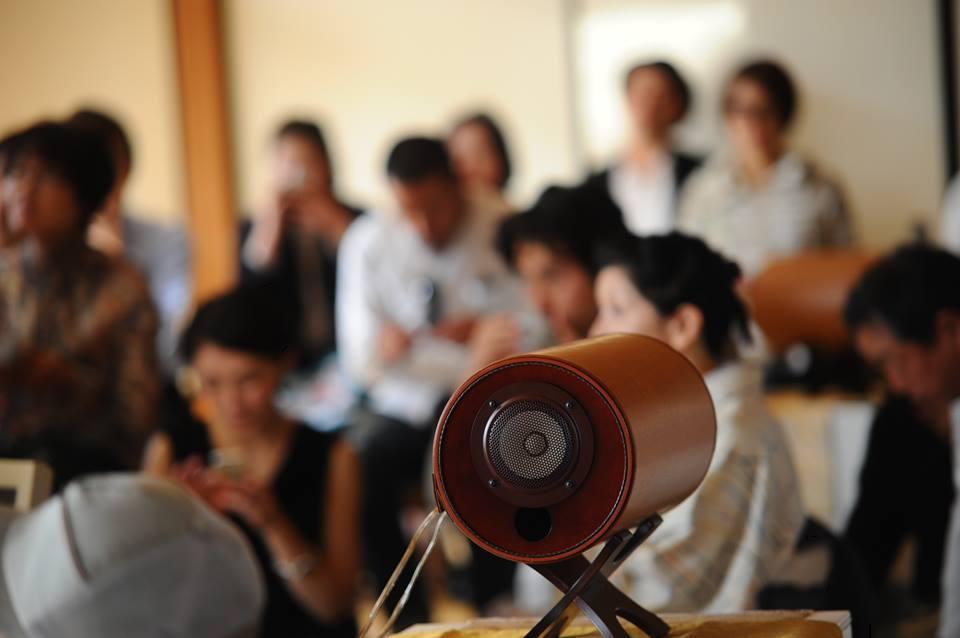 それから日本の清流の音に合わせてドビュッシーの「月の光」。美しい音波が流れるとざわついていた方々も徐々に静かになり、いつの間にか会場全体が、小さなスピーカーから出る生きた音に包み込まれます。