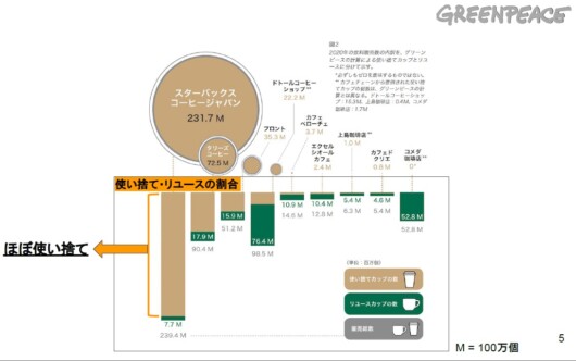 この結果をふまえ、グリーンピースは特に使い捨てカップ消費量の多いスターバックス コーヒー ジャパン、タリーズコーヒー、プロントの3社に対して、使い捨てカップから脱却を求める新たな署名を立ち上げるという。