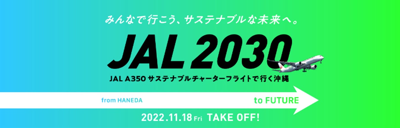 JALグループは、2050年にCO2排出量実質ゼロを目指すなど、すべてのフライトをサステナブルなものとし、空の旅を誇らしい価値に変えていくための取り組みを進めています。このたび、11月18日(金)に、東京(羽田)-沖縄(那覇)線で「サステナブルチャーターフライト」(以下、「本チャーターフライト」)を運航します。