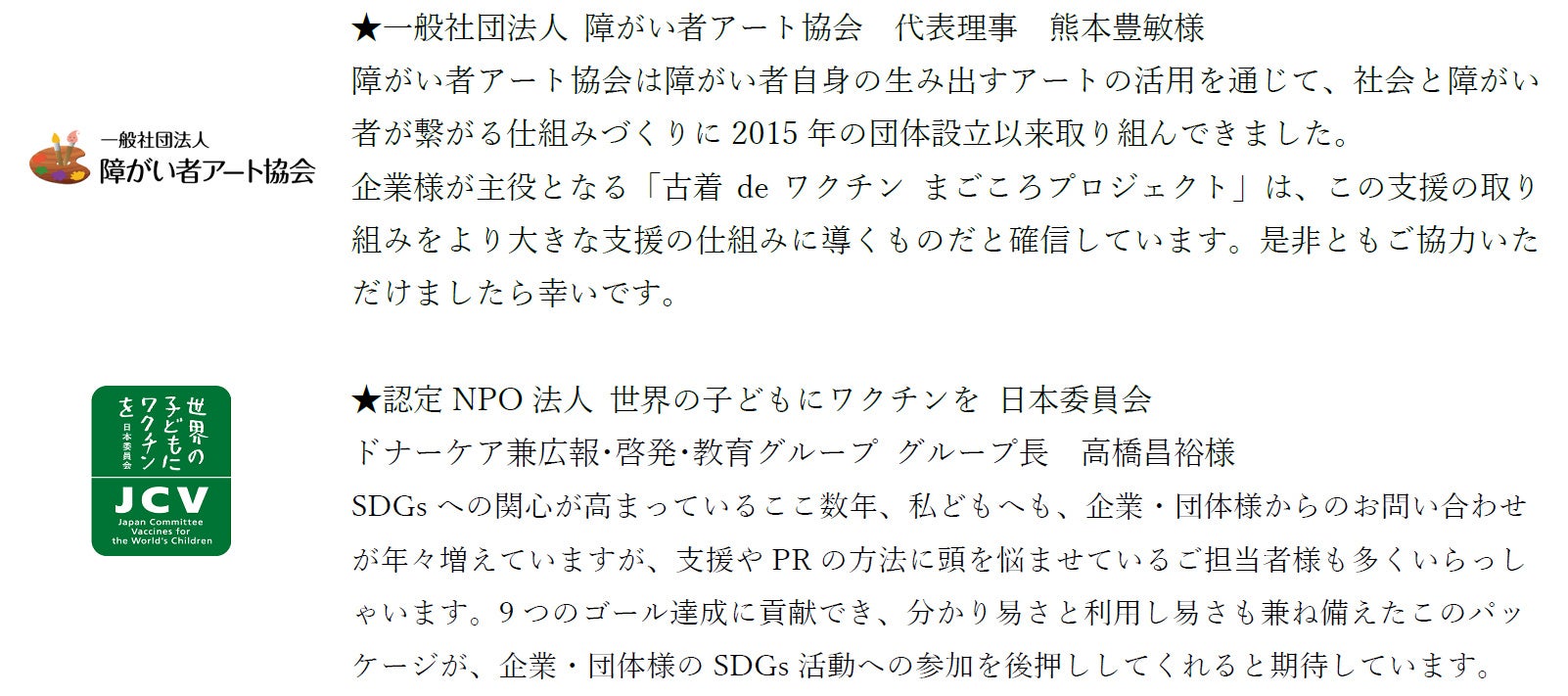 ■古着deワクチン まごころプロジェクトで連携する4つの社会福祉団体からのコメント