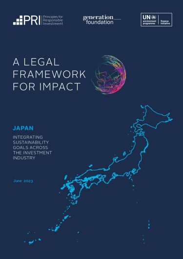 レポートは「インパクトをもたらす投資に関する法的枠組みの日本版ポリシーレポート」。PRI協会(本部: ロンドン)と国連環境計画・金融イニシアティブ(UNEP Fi)、ジェネレーション財団が発行した。